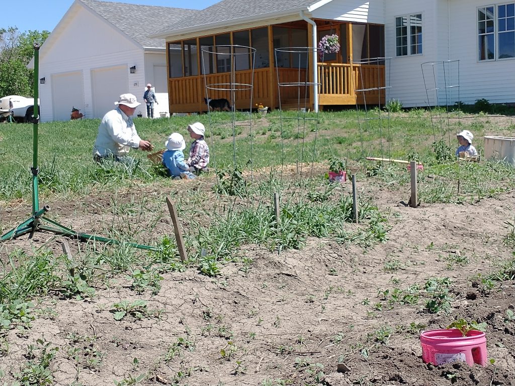 It’s 92 degrees right now and the weather report says 100 tomorrow. Andrew got a pool for the little ones, the big children are good sports and are having fun in it too…won’t be long before they won’t fit though. After a morning and early afternoon of mowing the yard, weeding, watering plants, collecting the flags from Memorial Day and tagging calves, the kids are sure enjoying some R &R.
