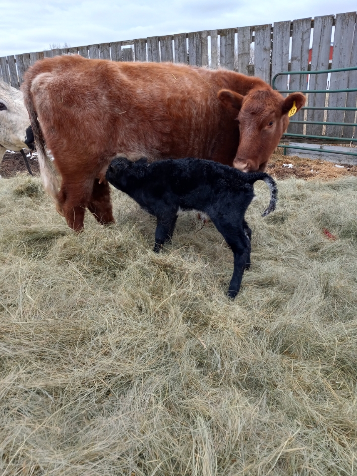 Frosty had a heifer. Simon’s pretty happy she had the first baby calf of 2026!