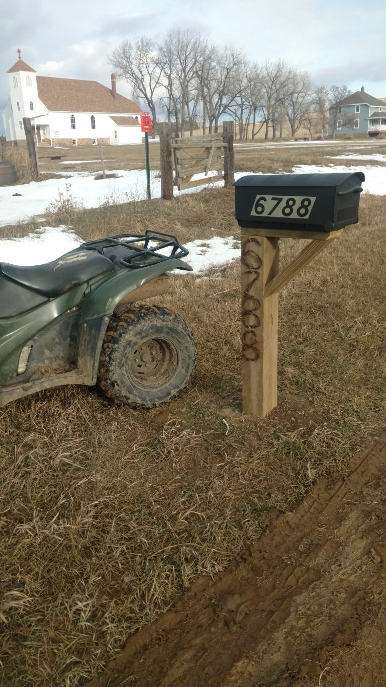 We were having troubles keeping the mailbox numbers on so Andrew used the saying, “use it up, wear it out, make it do, or do without.” He used some old barbed wire to make the numbers.