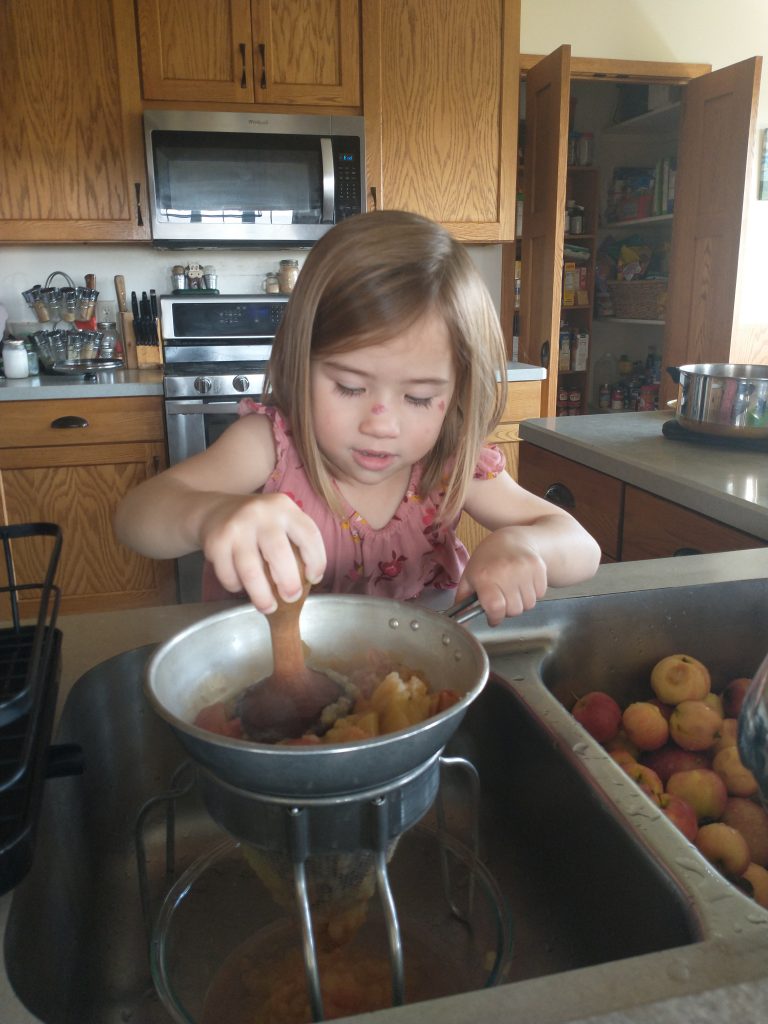 Simon and cousins picked apples from Grandpa’s ๐ tree! Time to make apple sauce, apple jelly, and dried apples.