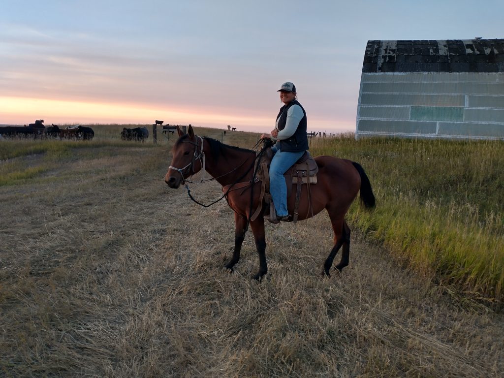 Grandpa’s mare, Penny, is beginning to be used for cattle drives.